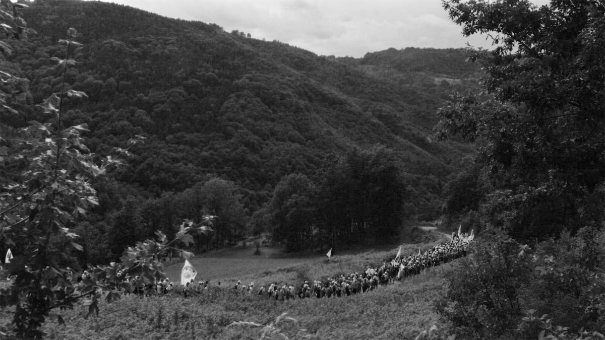 Araf is an essayistic road movie and diary of a ghostly character, Nayia, who travels between Srebrenica and Sarajevo to Mostar in Bosnia. She has been in exile since the war and returns for the 22nd memorial of the Srebrenica genocide. The film is guided by her diary notes of the journey which merge with the myth of Daedalus and Icarus – Icarus being the name given to the winner of a bridge diving competition in her home country. The story of Icarus and Daedalus, a myth symbolic of man’s over-ambition and inevitable failure, is weaved throughout the film as a way to think about exorcizing the vicious cycle of such events happening in the future and of a possible reconciliation. Nayia also thinks of Icarus from a different perspective, that of seeing the optimism of such a leap, his braveness of taking a leap into the unknown in this era of radical instability, that perhaps, Icarus wanted to write a different narrative. Araf thus traces these paradoxes through Nayia’s displacement and her return to her home country post-war – that of a constant terror and a permanent standstill, and the friction between displacement and permanence.